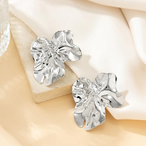Gold Statement Earrings for Women,Irregular Silver Geometric Big Flower Earrings Chunky Drop Earring,Aesthetic Vacation Jewelry Accessories Gifts 2