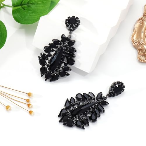 • Statement Look:These black dangle earrings are designed with brilliant rhinestones arranged in a teardrop and clustered layout, creating stunning statement earrings for women. A perfect accessory for black jewelry or formal events