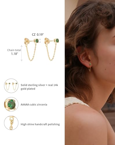 S.Leaf 925 Sterling Silver 18Karat Gold Plated Chain Earrings for Women Hypoallergenic Cubic Zirconia Tassel Drop Dangle Stud Earrings Bridesmaid Gifts Best Friend Birthday Gifts for Women Trendy Birthstone 6