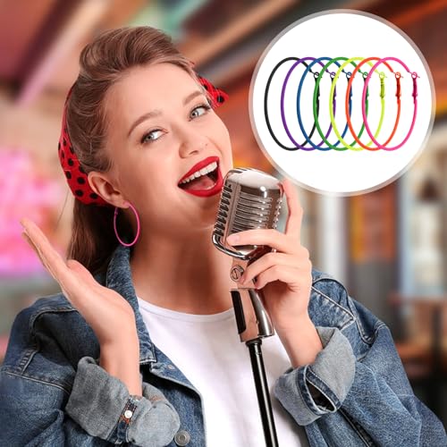 7 Pairs Hoop Earrings, Earrings in Multiple Colors, Vintage 80s-90s Style Pink Earrings for Women, Perfect for Parties & Music Festivals 6