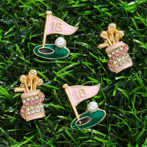 • ELEGANT DESIGN: Two pairs of golf-themed stud earrings featuring sparkling rhinestone details, perfect for sports enthusiasts and fashionable golfers