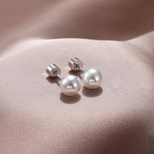• FLAT BACK STUD EARRINGS -- Our flat back pearl studs have a safety screw back design to ensure the hypoallergenic pearl earrings stay in place at all times, also suitable as nap earrings. Enjoy practicality and comfort pearl stud earrings, perfect earring for everyday or any special occasion, adding an elegant touch to any outfit