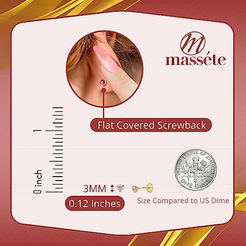 14k Gold 3-Prong Simulated Diamond Stud Earrings - Martini Style, 3mm 4mm 5mm, Covered Screwback for Women 3