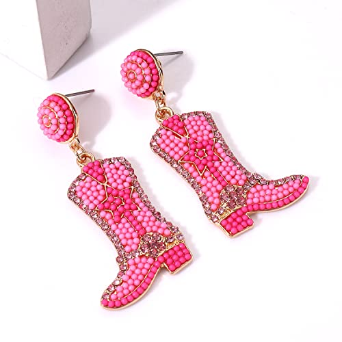 HOT ! Beaded Cowgirl Boot Earring Western Cowboy Boots Earrings for Women Boho Beads Shoes Dangle Drop Earrings Y2k Jewelry Party Gift (pink)