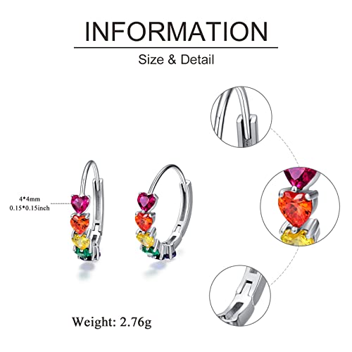 More information about Rainbow Hoop Earrings 925 Sterling Silver Colorful Huggie Hoop Earrings Jewelry Gift for Women