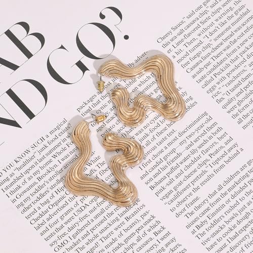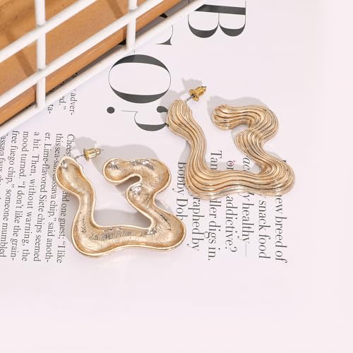 More information about Gold Statement Earrings for Women Geometric Rectangle Chunky Gold Earrings Irregular Hammered Trendy Stud Earrings