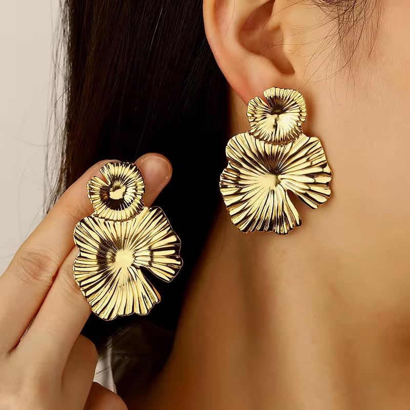 Gold Flower Earrings for Women – Chunky Statement Dangle Earrings, Hypoallergenic Lightweight Stainless Steel Jewelry, Elegant Bold Earrings for Party, Wedding, Gift 5