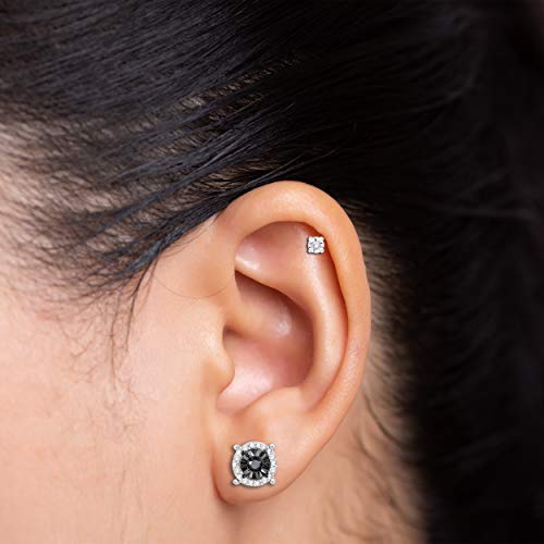 NATALIA DRAKE Black Diamond Stud Earrings for Women or Men in Rhodium Plated Sterling Silver Halo Style Flat Back Post Earring 4