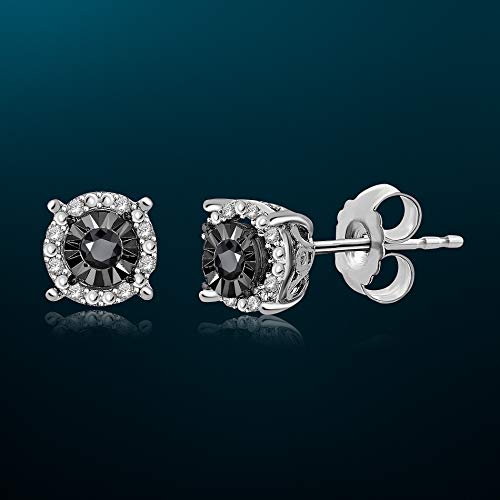 NATALIA DRAKE Black Diamond Stud Earrings for Women or Men in Rhodium Plated Sterling Silver Halo Style Flat Back Post Earring 1