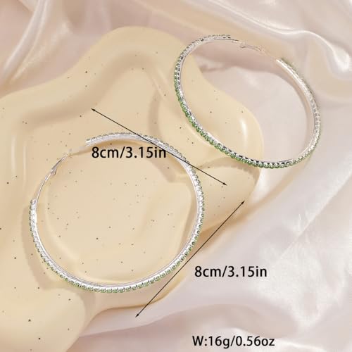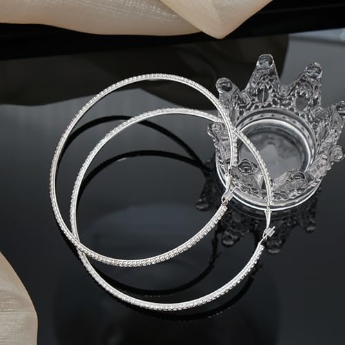 HOT ! 80mm Rhinestone Hoop Earrings for Women Sparkly Earrings Cubic Zirconia Circle Earring Exaggerated Prom Earring Large Rhinestones Round Hoop Earrings Silver Prom Jewelry for Party Wedding Birthday