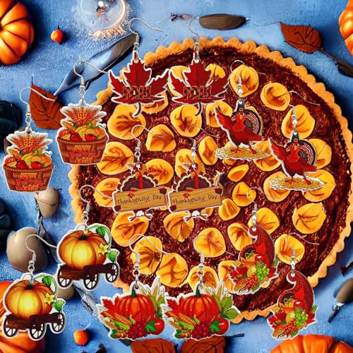 HOT ! 4-7Pairs Thanksgiving Fall Earrings for Women Leopard pumpkin Maple Leaf Turkey Sunflower Pine Cone Drop Dangle Earrings Set Autumn Thanksgiving Jewelry