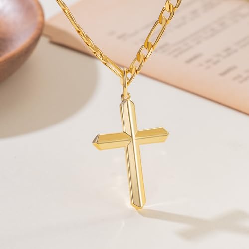 • [GEOMETRIC WITH BOLD EDGES] This gold plated cross necklace for men features sharp, defined edges and clean lines. From every angle, the mens cross necklaces reflects a sleek metallic shine. The bold silhouette transforms the classic cross necklace for men into a powerful statement of strength and modern style