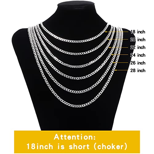 HOT ! Fiusem 5mm Silver Tone/Gold Cuban Link Chain for Men, Mens Chain Necklaces, Stainless Steel Chain Necklaces for Men Women, 3.5/4/5mm