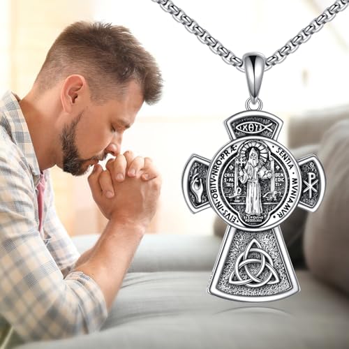 Saint Benedict Necklace for Men 925 Sterling Silver Amulet Men's Pendant Necklace San Benito Medalla Jewelry Gifts 1