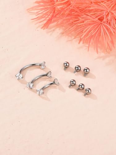 • Package: A total of 9 pieces, includeing 3pcs 316L surgical steel CZ curved eyebrow rings and 6pcs replacement piercing balls set