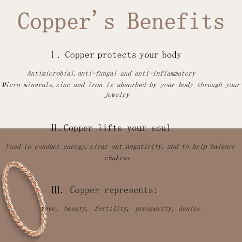 • 【 Benefits】- Our pure copper tensor ring is believed to help healing, wearing this ring makes you more elegant and noble.Solid Copper rings There are a variety of sizes to choose from,size:5-10,looks great and fashionable on both men and women