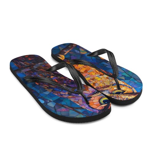 Boho Gypsy Owl Flip-Flops, Cute Vintage Bird Print Sandals, Comfy Beach Slides, Summer Casual Shoes for Women 7