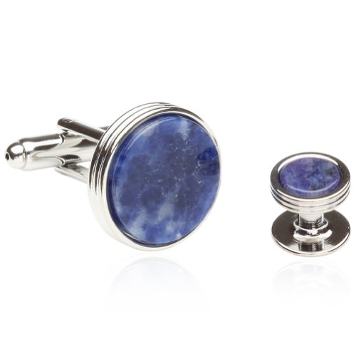 More information about Blue Sodalite Tuxedo Shirt Cufflinks Studs Formal Set for Men with Travel Gift Box Lapis Lazuli Blue Cufflinks and Studs