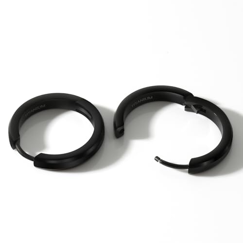 HOT ! TGNEL Large Black Mens Titanium Hoop Earrings for Sensitive Ears, Fashion Brushed Titanium Earring Hoops for Men Bevel
