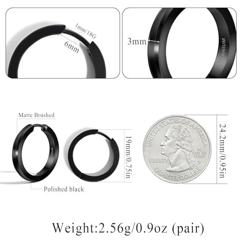 • CLIP ON EARRINGS FOR MEN: Titanium mens black earrings hoops, which a Nickel-free, Lead-free material, wear comfortable and hypoallergenic