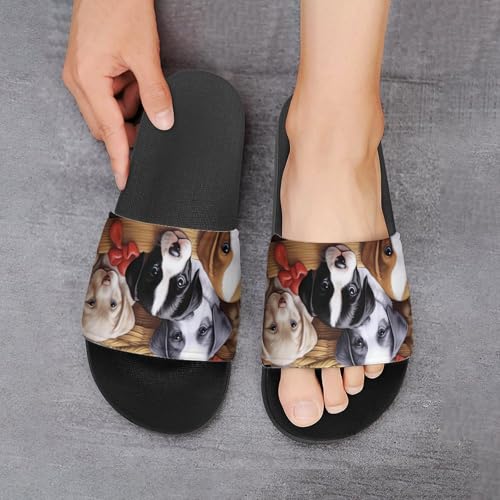 Cute Dogs in Basket Non Slip Slides Sandals for Women Men Quick Drying Shower Shoes for Bathroom Pool Beach 7