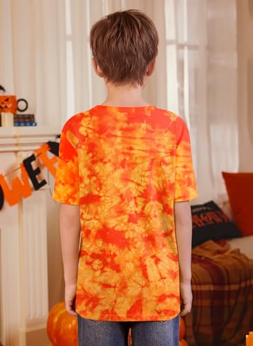 • Festive & Fun - With a trendy tie-dye accent, featuring a cute jack o'lantern pumpkin face, skeleton, witch, and ghost designs, the Halloween themed short sleeve top is perfect for boys and girls to celebrate the spooky season, offering festive charm and playful graphics.