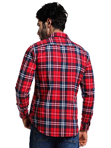 • Great Fit: Regular fit, flannel material of these warm red and black plaid casual style, with point turn down collar