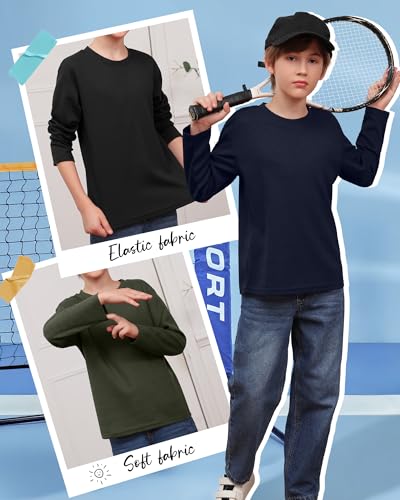 • Warm Tip: you will get 3 pack boys long sleeve t-shirts in different colors, you can choose the color combination your child likes; Please choose the size from the age; If your child prefers a "slim fit", please order one size down than them normally wear
