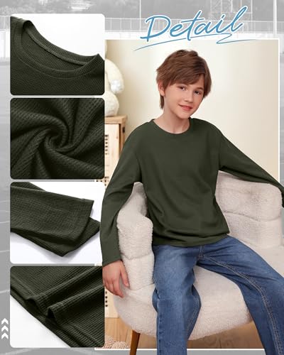 3 Pack Boys Waffle Long Sleeve T-Shirts 5-14 Years, Cotton Thermal Crewneck Tops Kids Fall Warm Shirts Basic Tees 4