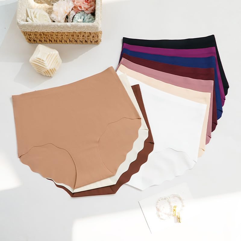 More information about 5PCS Soft Comfy Seams High Waist Thongs Solid & Scallop Edge Comfortable Tummy Control Panties (Y,XL)