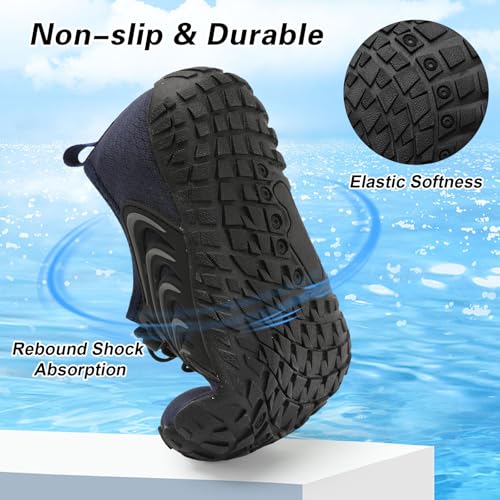 • Quick Dry & Breathable: kids water shoes upper is made of breathable elastic mesh, which can quickly dry and absorb sweat, and make feet feel cozy and cool in the water sports or beach. High-density elastic fabric is not easy to break
