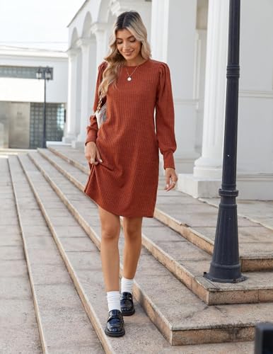 Zeagoo Women's Knit Dress with Puff Sleeves for Fall & Winter - Round Neck Casual Tunic Dress 6