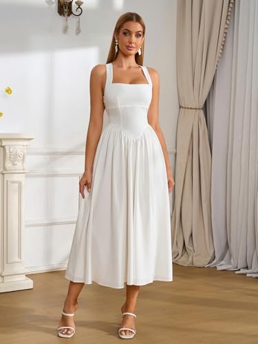 • FEATURES: Milkmaid dress women, floral dresses with square neckline and halter neck straps to beautifully framed decolletage, statement bow tying at the lower back, flowy a-line split hem made this fit and flare dress for women looks sexy and cute