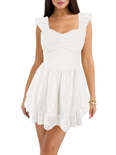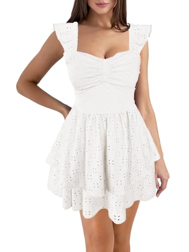 HESUUIO Women's Summer Mini Dress Elegant Backless Hollow Out Eyelets Layered Flowy Swing Short Party Dress Casual Sundress 1
