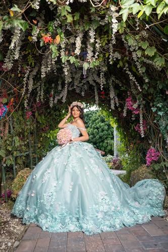• Design: Elegant quinceanera dresses ball gown with train;3D Floral;glitter tulle;beading sweet 16 dresses;Off shoulder;Kindly noted: The model in the picture wears underskirt. If you want to achieve the same look as the picture, you can wear a underskirt too.