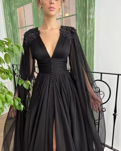 • Fabric type: Tulle Prom Dress with Cape V Neck Lace Applique Prom Dresses Long Slit Ball Gown for Women