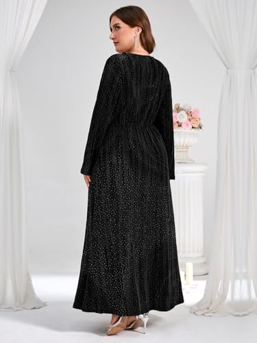 ZOMVA Plus Size Sparkly Formal Dress A-Line V-Neck Long Sleeve Glitter Maxi Gown Wedding Guest Cocktail Evening Party 5