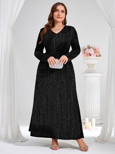 ZOMVA Plus Size Sparkly Formal Dress A-Line V-Neck Long Sleeve Glitter Maxi Gown Wedding Guest Cocktail Evening Party 6