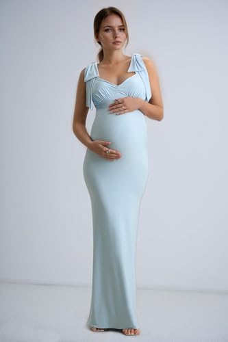 Womens Maternity Dress for Photoshoot Long Mermaid Bow Straps PregnancyPhotography Baby Shower Dress 1