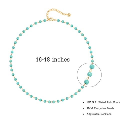 • DESIGN: Our tiny beaded necklace is combination of rolo chain and round turquoise beads. Bring you a Bohemian style. Beaded chain necklace is 18k gold plated with vibrant turquoise, trendy and shiny, small and simple. This dainty gold beaded chain necklace is eye-catching and makes easy lifestyle and energetic life.