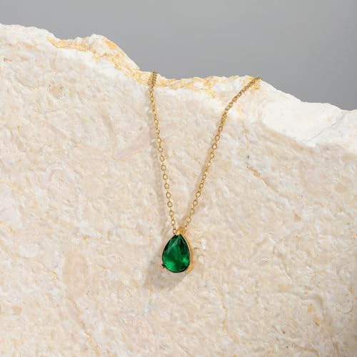 18K Gold Plated Birthstone Necklace for Women Dainty Diamond Teardrop Necklaces Emerald Green CZ Pendant Necklace Birthday Gift for Women Jewelry 1