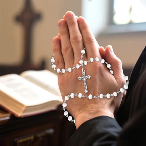 • Ideal Combination: Crafted with premium materials and meticulous workmanship, this white rosary set is built to last. It features wooden beads, alloy cross pendants, iron connectors, with a plastic box—all combining to create durable, reusable pieces that are sturdy, safe, and resistant to fading, ensuring long-term use, allowing you to conveniently share these beautiful religious keepsakes with your loved ones.