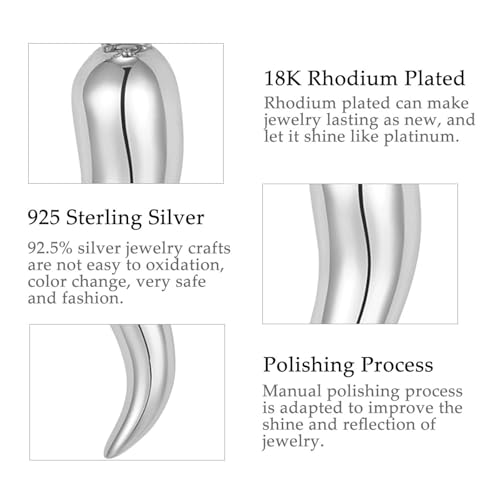 • Italian Horn Pendant Size: Pendant:6.8*39.2 mm(0.27*1.54 in)| Weight: 3.18 g(0.11 oz)| Chain:55+5 cm(22+2 in). The adjustable chain length makes this sterling silver italian horn jewelry easy to style with any outfit.
