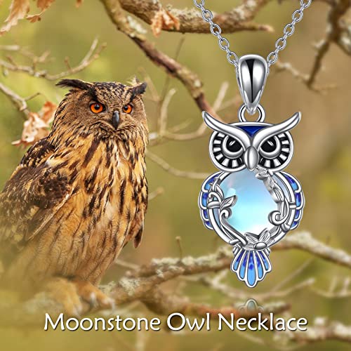 LUHE Moonstone Owl Necklace Gifts Sterling Silver Filigree Owl Pendant Necklace Christmas Jewelry for Women Girls 5