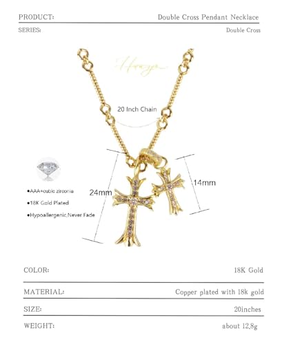 Double Cross Vintage CZ Diamond Cross Long Pendant Necklace 18k Gold Plated Choker Necklace for Women,Trendy Jewelry Gifts for Women. 6