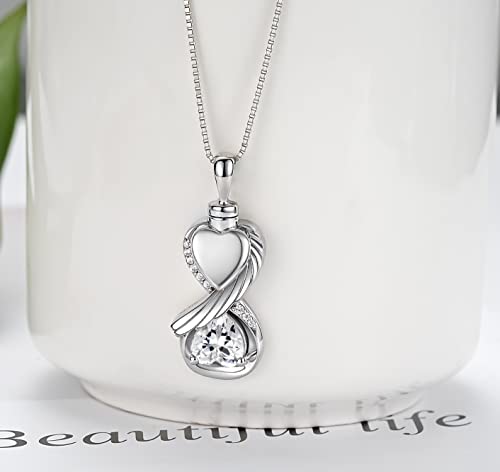 Sterling Silver Infinity Urn Necklace for Ashes for Women - 925 Wing Cremation Necklace Jewelry that Hold Ashes of Human or Pet - Memorial Keepsakes Heart Pendant Gift Jewelry 1