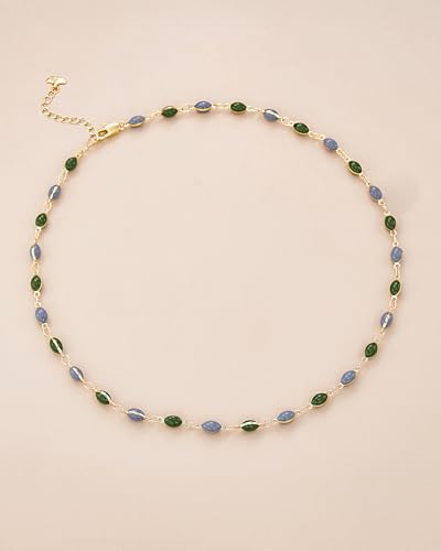 18K gold plated Blue Green Enamel Bead Stone Healing FULLY ADJUSTABLE Statement Necklace Choker for Women by SNGIA, Colorful Beaded Acrylic Strand Tennis Trendy Bohemian Preppy Retro Handmade Jewelry Gifts, Multicolor Vintage Unique Cute Baroque Summer Beach Fashion Nickle Free Accessories 1