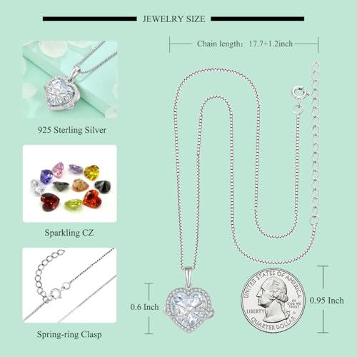 STARCHENIE Rose Necklace for Women 925 Sterling Silver Heart Pendant Necklace Birthstone Jewelry 6