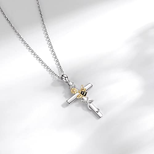 Cross Necklace 925 Sterling Silver Sunflower Pendant Bee Necklace You are my Sunshine Jewelry Gifts for Women 4