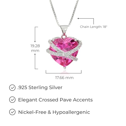 • STYLE: Lovely pendant necklace featuring an 15mm heart shaped created pink sapphire wrapped in ribbons of created white sapphire stones set in 925 sterling silver